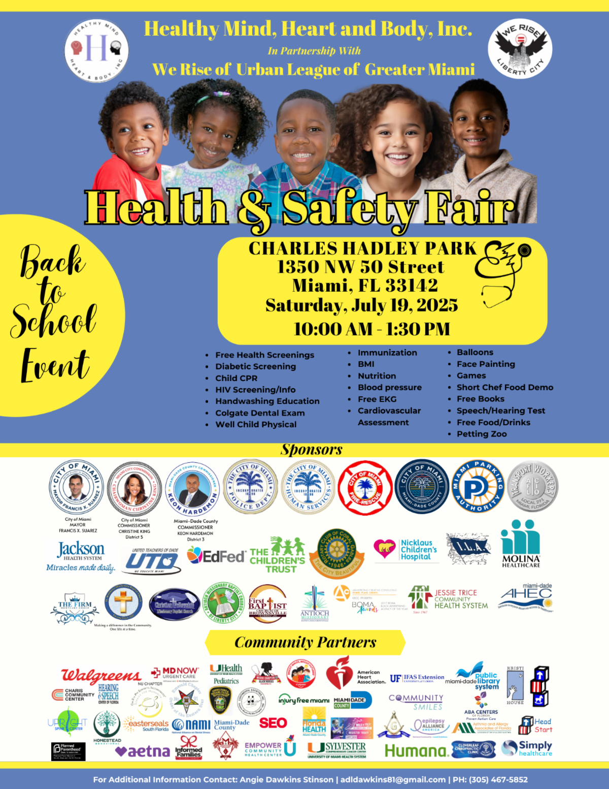 Join us on July 19th from 10am -1:30 pm for a Back to School Health & Safety Fair.