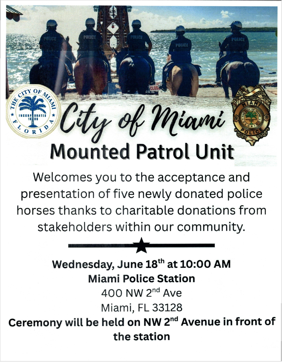 Mounted Patrol Unit welcomes you to the acceptance and presentation of five newly donated police horses - Thanks to charitable donations from stakeholders within our community.